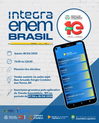 Integra Enem Brasil: 200 vagas gratuitas no plenário da Câmara de Itapevi